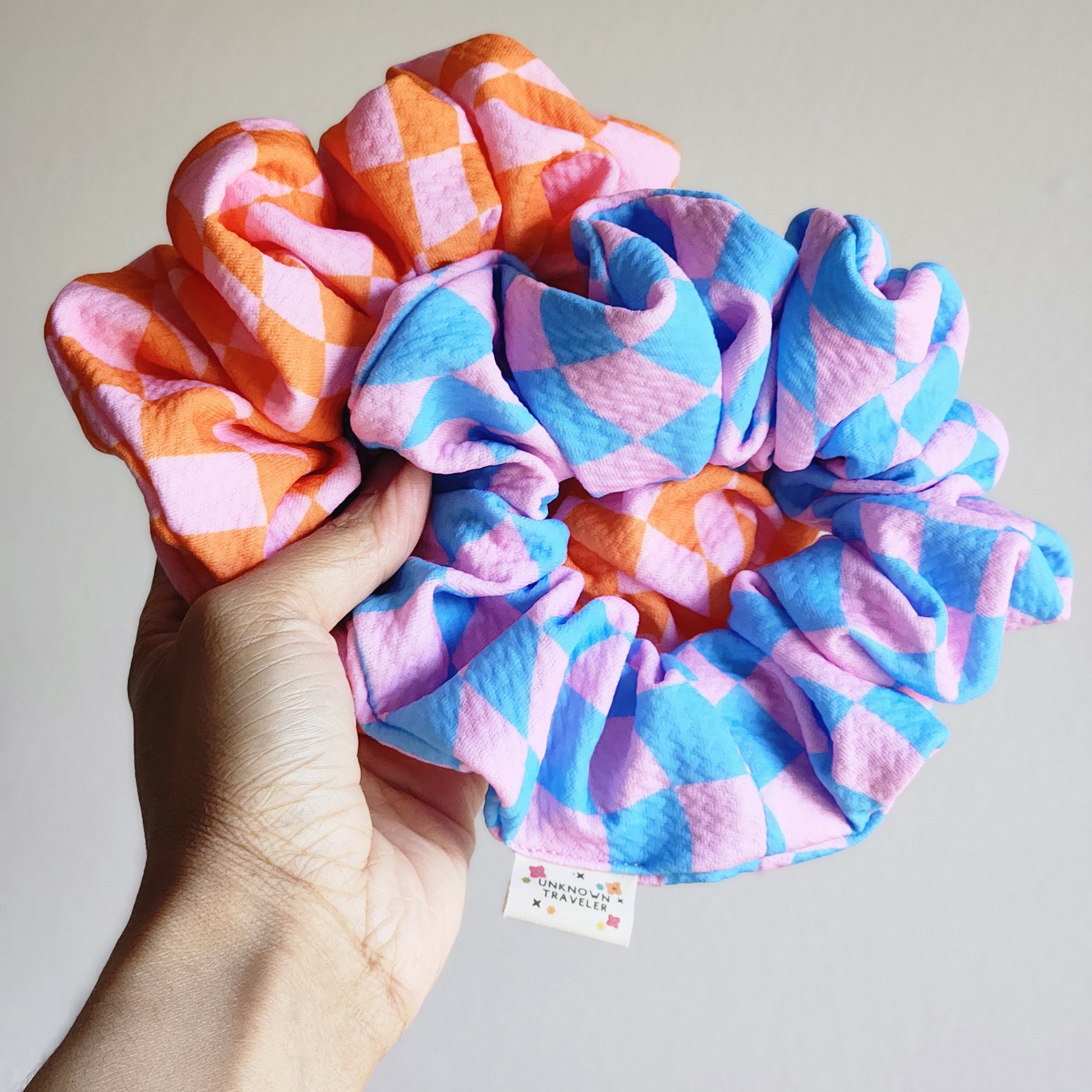 XL racing checkered scrunchie (blue)
